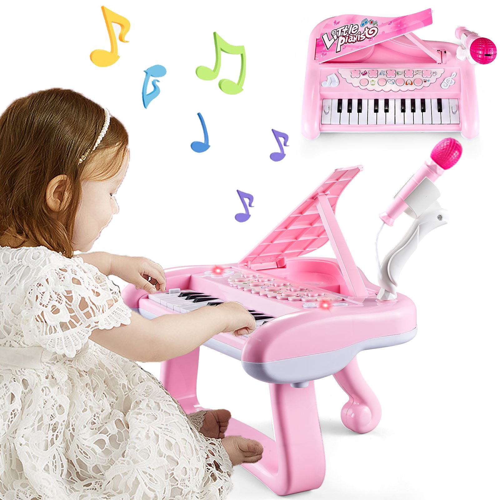 First Birthday Toddler Piano Toys For 2 3 Year Old Girls Baby Musical Keyboard 22 Keys Kids Age 18 Months Play Instrument With Microphone Infant Pink Piano Gifts With 3 Batteries